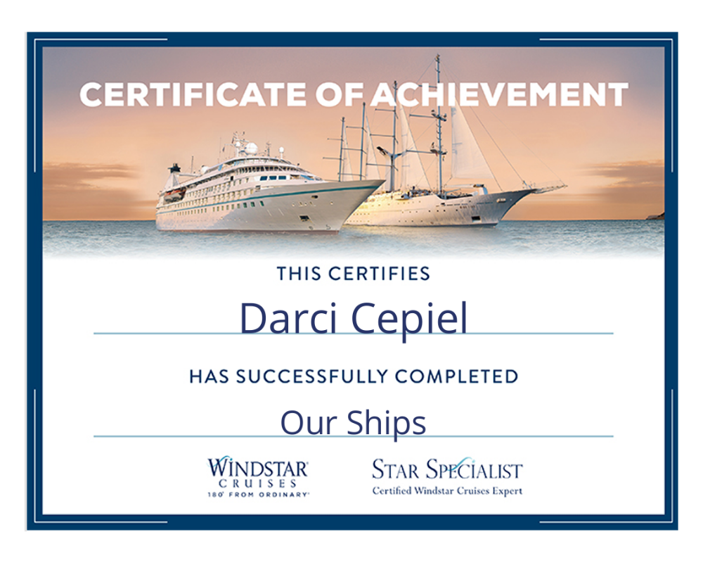 Darci Windstar Certif. Cruise Skills Posted on March 18, 2026 ← Darci Fora Advanced Certification National Geographic Expeditions Specialist →